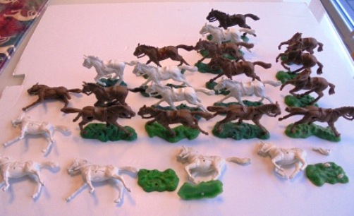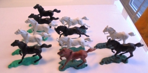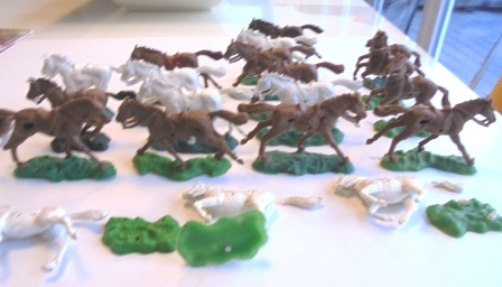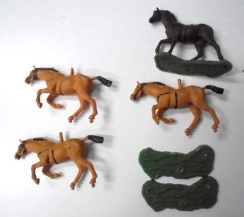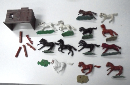 mainly Britains horse selection includes military show jumpers horse & bar to fit under long indian canoe, possibly? £15.00 the lot.