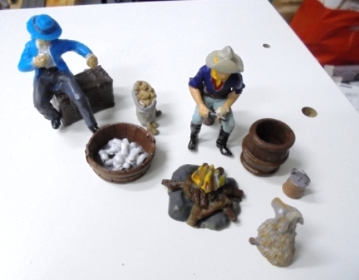 U.S. Cavalry -peeling potatoes by the fire, with dog. Set as shown £10.00